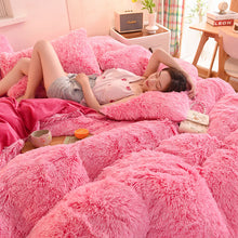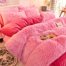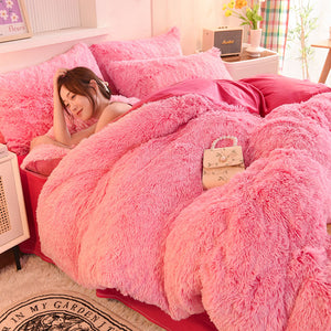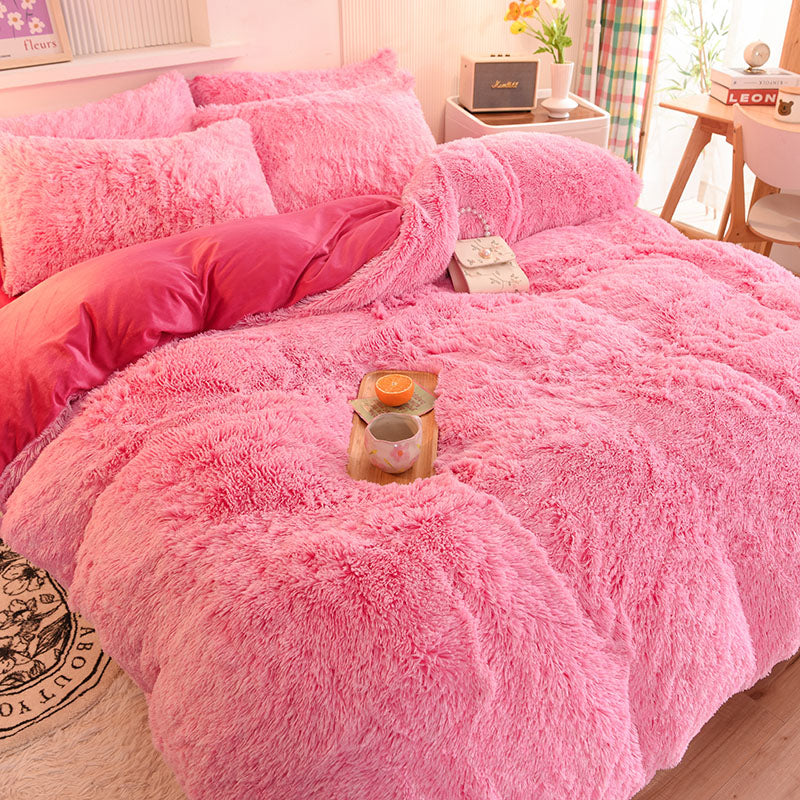 Fluffy Faux Mink & Velvet Fleece Quilt Cover Set - Pink white