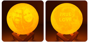 Send us your picture and we will embed it within the Moon Lamp, also can add your choice of text on the back!